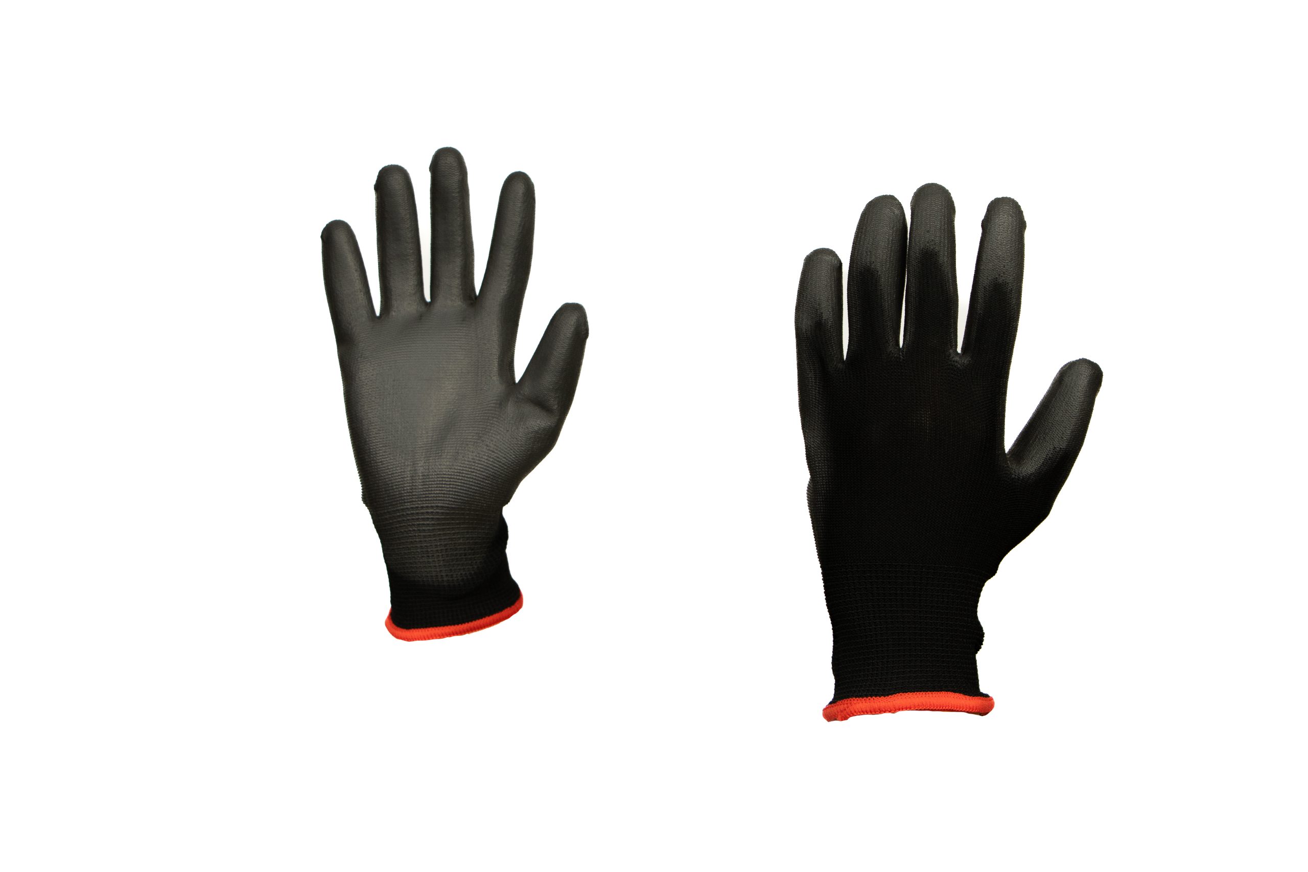 Guante de Poliéster Negro recubierto de PU en palma y dedos, paquete con 10 pares